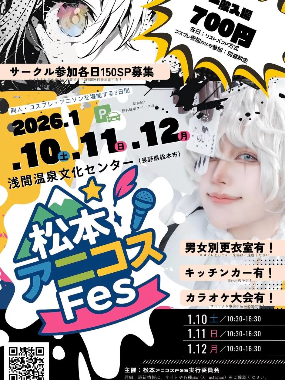 松本アニコスFes|1月10日(土)〜1月12日(月・祝)浅間温泉文化センターで開催、アニメ・コスプレ・同人誌の大型イベント